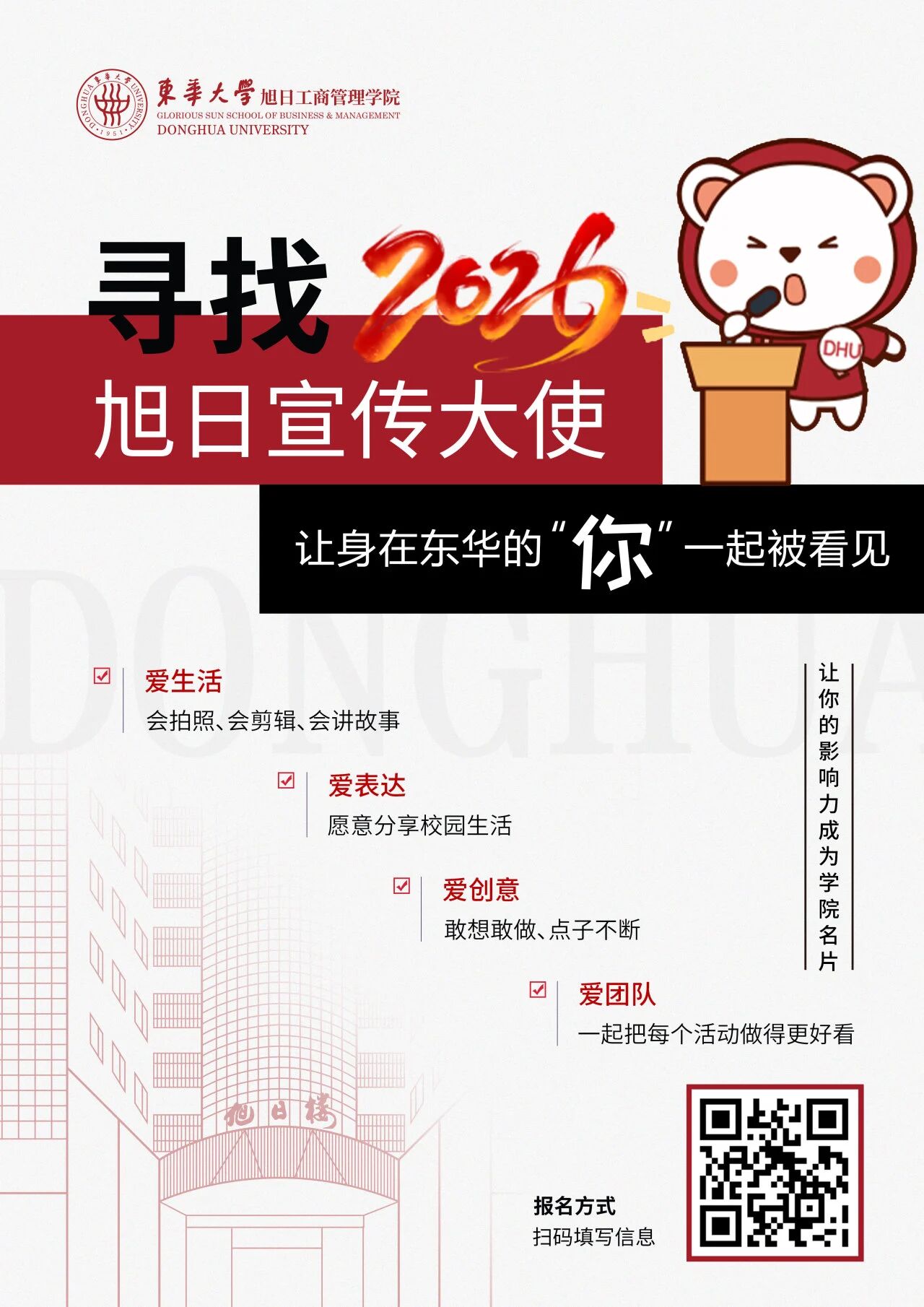 招募令 | 东华大学“旭日”宣传大使团 期待与你同行
