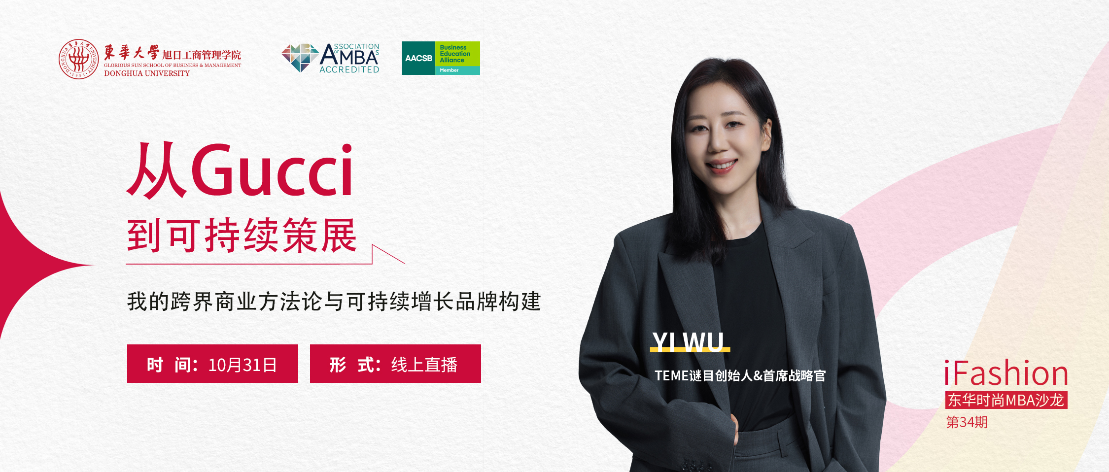 第34期iFashion东华时尚MBA沙龙预告 | 从Gucci到可持续策展——我的跨界商业方法论与可持续增长品牌构建
