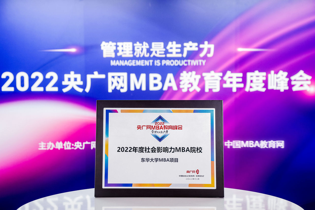 喜讯丨东华大学MBA项目荣获2022央广网MBA教育年度峰会“年度社会影响力MBA院校”大奖!
